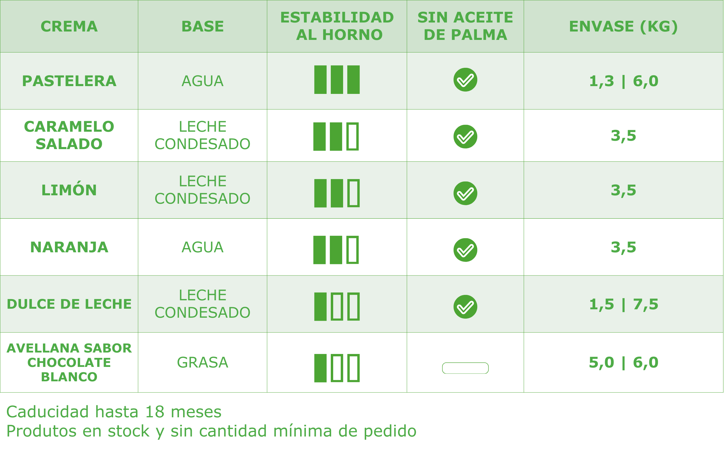 Nuestras cremas son ideales para rellenos o coberturas, y enriquecerán cada una de sus creaciones, desde las más tradicionales hasta las más audaces.