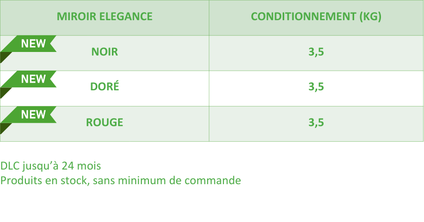 Pour les occasions spéciales, ou simplement pour ajouter une touche de raffinement, vous pouvez compter sur notre gamme de Miroirs Elegance. Ces Miroirs peuvent être d’application directe à froid ou à chaud, suivant l’usage souhaité. Ils permettent une finition d’excellence, associée à une meilleure conservation de l’application.