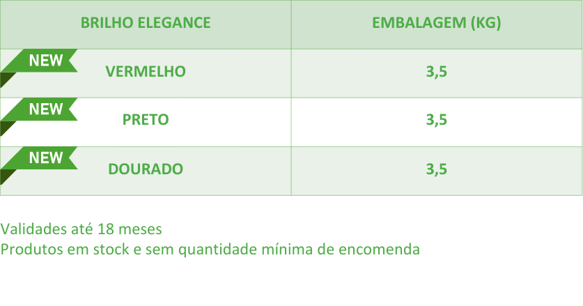 Para ocasiões especiais, ou simplesmente para adicionar um toque de requinte, poderá contar com o nosso portefólio de Brilhos Elegance. Estes Brilhos podem ser de aplicação direta ou de aplicação a quente, conforme a finalidade a que se destinam, permitindo um acabamento de excelência, associado a uma melhor conservação da aplicação.